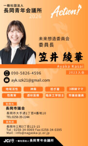 支所地域に暮らす人々やその地域に想いを持つ人々の活動が、個から協働へと広がり、地域の課題解決に新しい気づきが芽生え、支所地域の未来を切り開く力が高まります。その力をもとに地域の魅力は未来へ紡がれ、10の支所地域は地域外からも大切にされる存在となります。そして、長岡JCは世代や地域の垣根を越えて、未来を想い、共に創る架け橋となります。